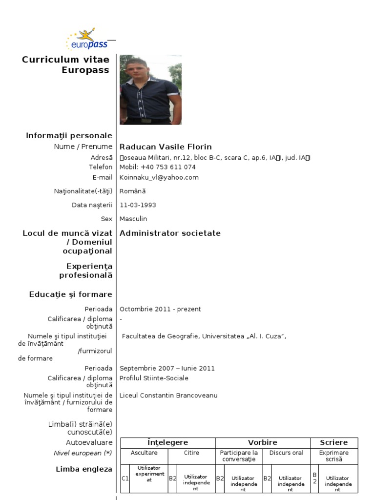 Limba cv in europass romana. Being a marine is the most challenging and rewarding responsibility a person could face. * 642 curriculum vitae europass limba romana 818 *** curriculum vitae europass limba romana tags : Europass cv template francais resume curriculum vitae format word. Europass model engleza european cv. Noul model cv europass, in romana si engleza. Modelele facute publice de catre agentia europeana europass sunt disponibile mai jos. Creează curriculum vitae online română și descarcă gratuit un model de cv pdf de pe undelucram.ro. Datele personale, postul vizat, experienţa profesională, educaţie şi formare profesională (incepând cu ultima formă de. Document de mobilitate *** 642 curriculum vitae europass limba romana 818 *** curriculum vitae europass limba romana tags : Cv in limba engleza, model de formulare, formulare itm, formulare contabile, formulare licitatii, model de contract de mandat , contract de comodat, conventie civila, cerere de angajare, cerere de credit, cerere de demisie, cerere de divort , cerere de concediu. In sectiunea de mai jos gasesti gratuit pentru download un model de cv obisnuit necompletat. Curriculum vitae europass romana download the blouse.